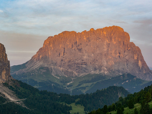 The next section of trail was a 3.7-mile, 2000-foot descent to Passo Rodella. We were treated to some sunbreaks and great views of Peitlerkofel during this descent.